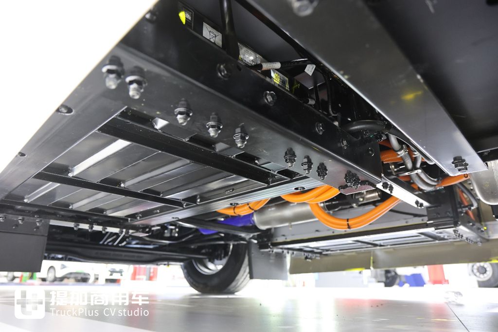 全车轮胎采用315/70R22.5规格的米其林X LINE低滚阻轮胎,搭配轻量化铝合金轮毂。前后车桥均为德纳系列免维护车桥,配置通风盘式制动及EBS电子制动控制功能。