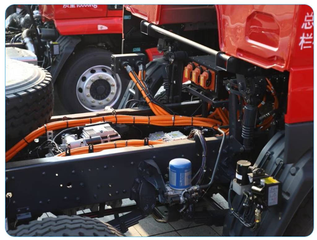 乘龙H7纯电自卸车在安全方面堪称“钢筋铁骨”:采用高强度钢龙骨框架与整体式门板设计,结合先进溃缩技术,已通过欧洲标准碰撞测试。车架经由亚洲最大的6300吨压力机一次冲压成型,具备超高强度与承载力,被誉为“龙的脊梁”,即便面对复杂工地与重载任务,依然表现稳健。