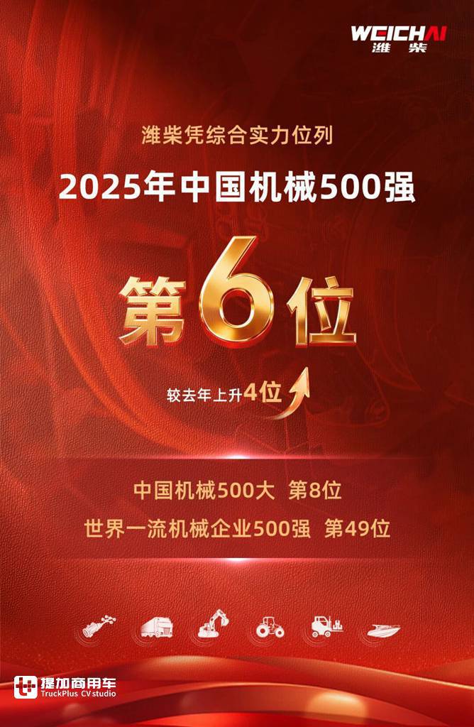 2月4日,由中国机械工业企业管理协会主办的2025年中国机械500强研究报告发布会暨中机企协业务总部启用仪式在江苏举办,潍柴凭综合实力位列“2025年中国机械500强”第6位,较去年上升4位;同时位列“2025中国机械500大”第8位、“2025世界一流机械企业”第49位,以多维优异表现彰显装备制造领军企业硬核实力。