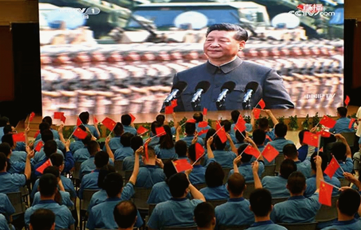 早上8时30分,法士特汽车传动工程研究院多功能厅早已座无虚席。满怀期待、兴奋、喜悦心情的广大干部员工,欢快地挥动着国旗与厂旗,激动的心情溢于言表。上午10时许,当雄壮有力、振奋人心的《义勇军进行曲》在天安门广场响起,全体干部员工起立齐声高唱国歌;当鲜艳的五星红旗冉冉升起,迎风飘扬,大家一时间热血沸腾,心中的爱国情怀化作满脸的激动与自豪。看到步伐整齐的受阅方阵、大国重器首次亮相,听到振奋人心、荡气回肠的口号声时,大家激动万分,不时报以热烈的掌声。