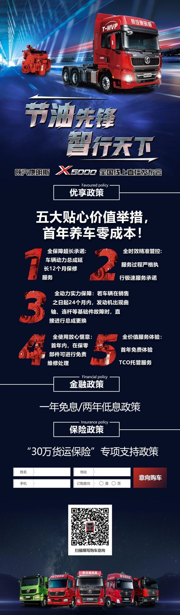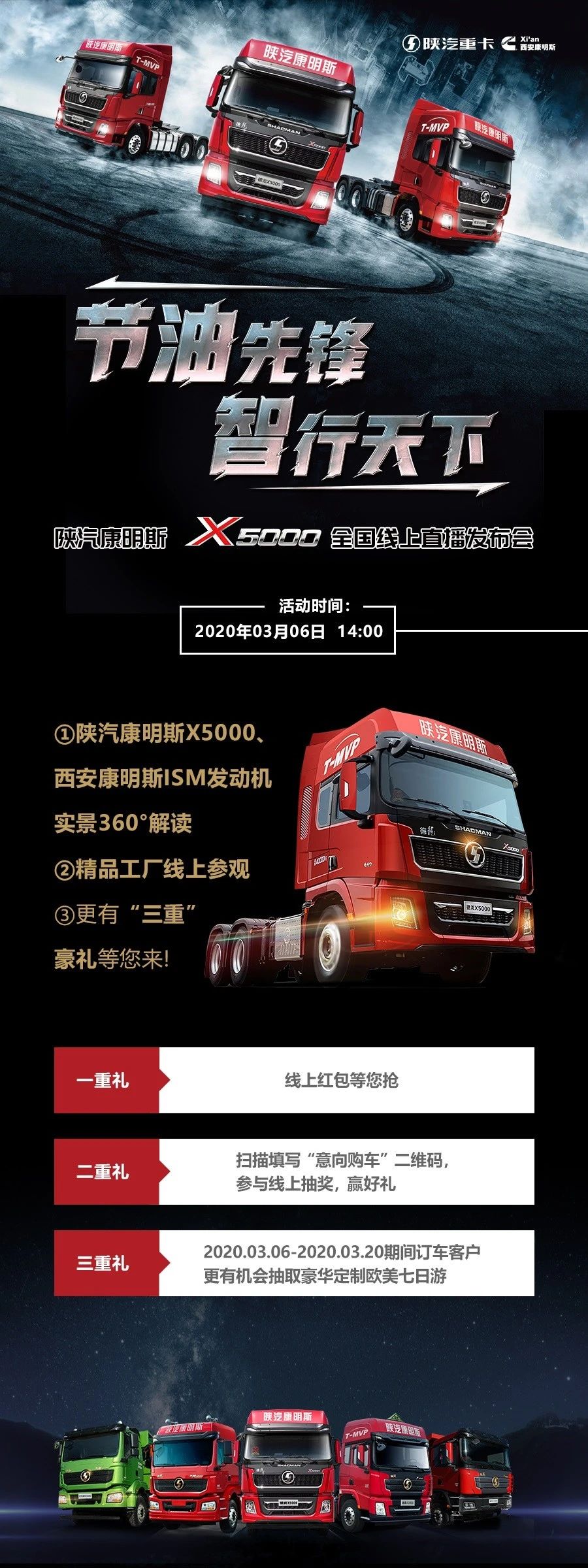 3月6日2点,陕汽康明斯X5000全国线上发布会精彩开启 编辑张靖 企业快讯2020年3月6日 11:399.34W0 节油先锋 智行天下——陕汽康明斯X5000全国线上发布会 3月6日14:00直播间开启精彩时段诚邀您持续关注 西安康明斯(17)陕汽重卡(590)本文来源西安康明斯,经授权后由编辑张靖发布,观点不代表提加商用车网的立场,转载请联系原作者。编辑张靖提加商用车小编,还请大家多指教!6.22K881.27M39.56W