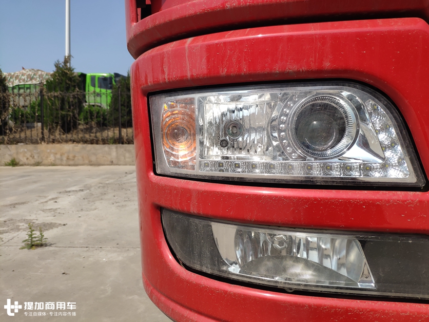 保险杠同样没有采用老款天龙的保险杠,新设计的保险杠整体风格和前格栅相搭,看起来并没有突兀的既视感。值得一提的是组合灯光内集成了透镜灯和LED光源,虽然看上去多少有些廉价,但总体配置还过得去,起码配置了LED光源。