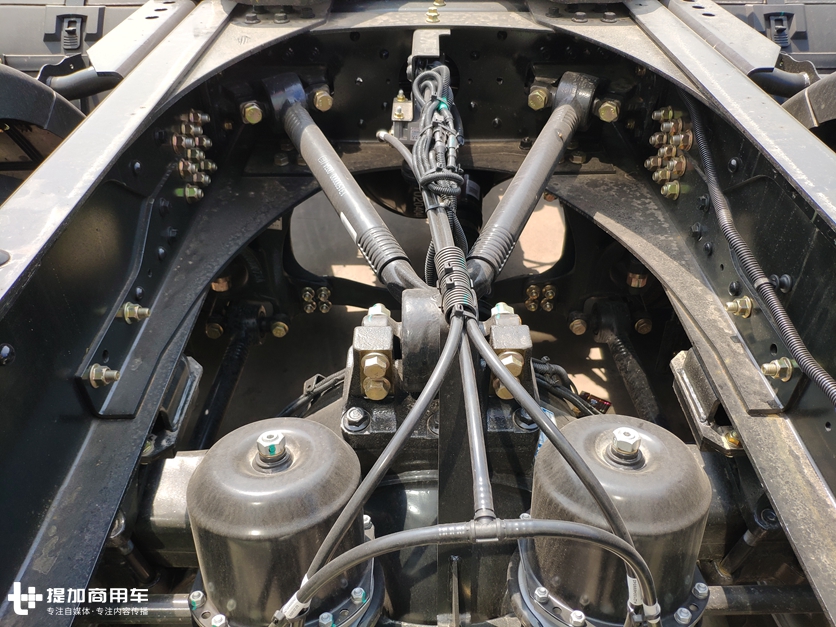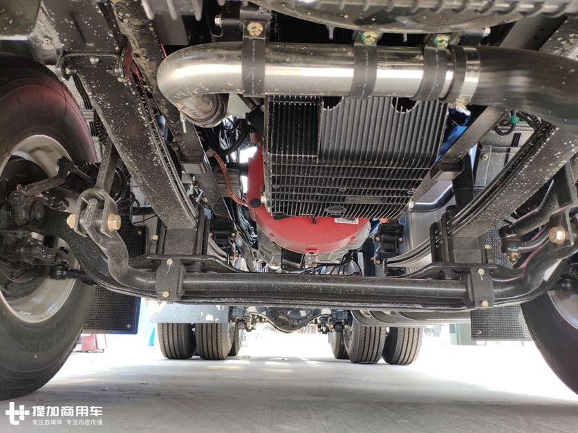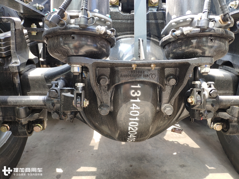 车桥采用了汉德425冲焊车桥,吨位18吨,速比有3.7和3.364两种可选,可根据自己的实际使用工况来定制后桥速比。