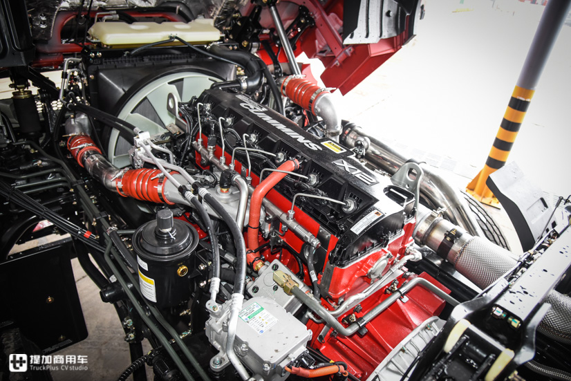 需要注意的是,这台X12康明斯发动机在同排量机型中,总质量最小,同时却有着2000bar燃油喷射压力,雾化好,燃烧充分,有着较好的燃油经济性。另外,该发动机缸内制动可以达到400马力制动力,是目前同机型中最大制动功率,可有效减少刹车系统的负荷,提升行车安全性。