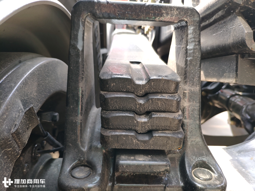 轻量化钢板簧也是减重非常重要的一部分,三一超亮版钢板簧形式为前2后4,这个结构是目前比较主流的一种减重方法,既能保证承载性,也可以兼顾一部分的舒适性。