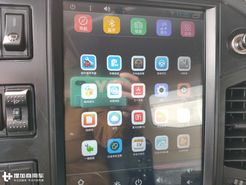 三一标志性的中控大屏得到保留,即使是在强光下,分辨率和清晰度也得到了保证。同时该多媒体支持多种应用,包括导航、音乐、娱乐等功能,几乎就是一个超大的平板电脑。