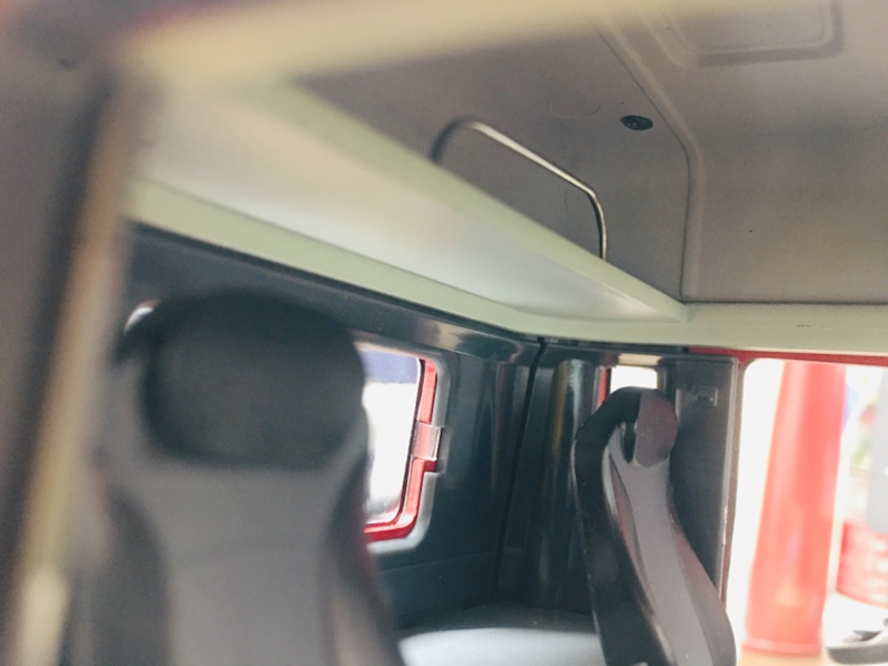 不过卧铺倒是有一个微不足道的亮点,就是上铺做出来一个护栏的结构,而几乎所有的国产卡车模型都没有把这个结构还原。不过也有一些卡车模型选择了还原其他位置,有的把上铺设计了爬梯,有的给下铺设计了护栏,甚至还有设计了小抽屉,五花八门的小设计,却都没能将实车的所有内部结构还原,这不得不说是一个遗憾。
