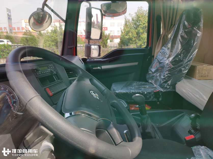 中控台和仪表盘设计中规中矩,典型的陕汽风格,谈不上惊艳和科技感,但胜在功能丰富,并且整个中控台以驾驶员为中心环绕设计,操作十分便捷。