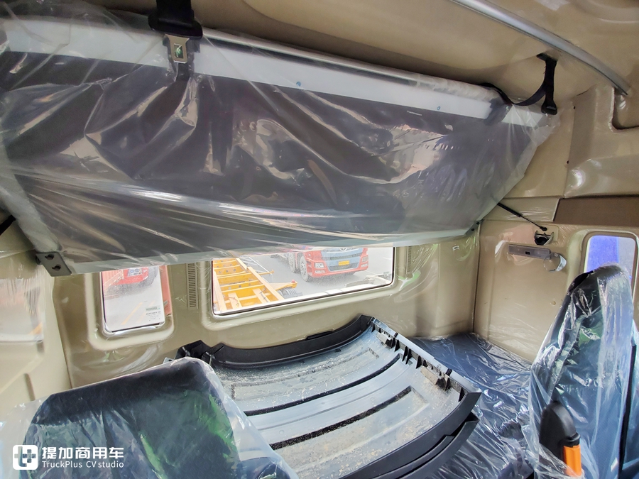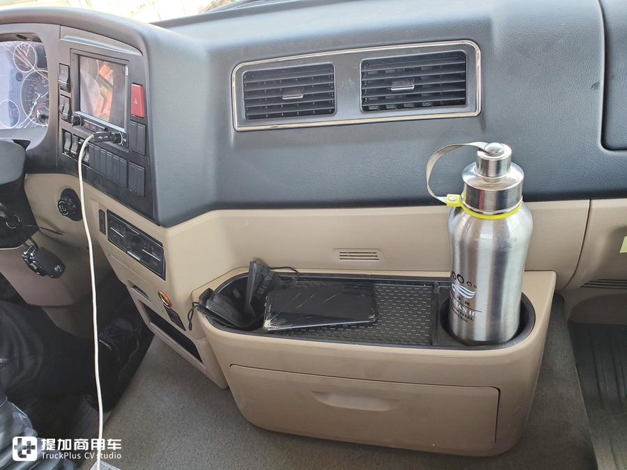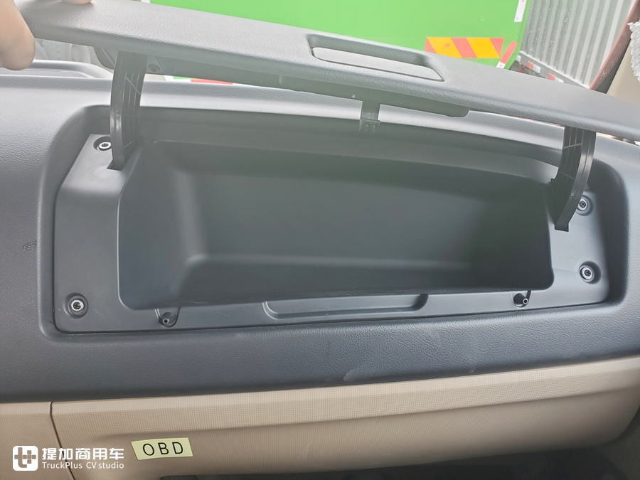驾驶室两侧有储物格的开口,这个储物格和卧铺下方的储物空间是贯通了,在一定程度上方便驾驶员取放物品。