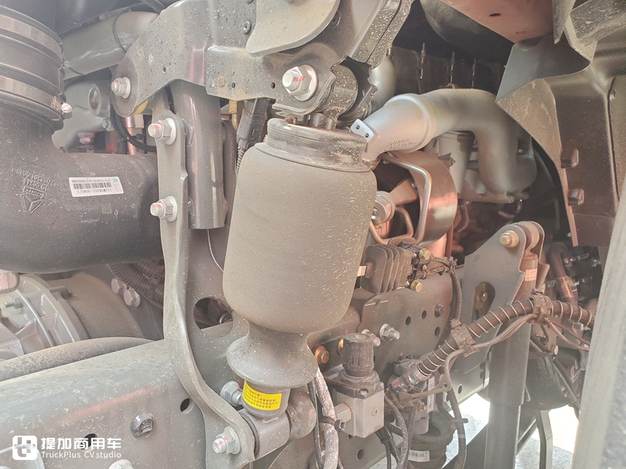 驾驶室采用四点式气囊悬浮减震,有效缓解车辆运行时的颠簸,提高驾乘舒适性。