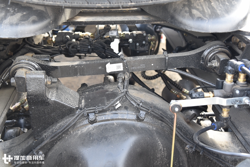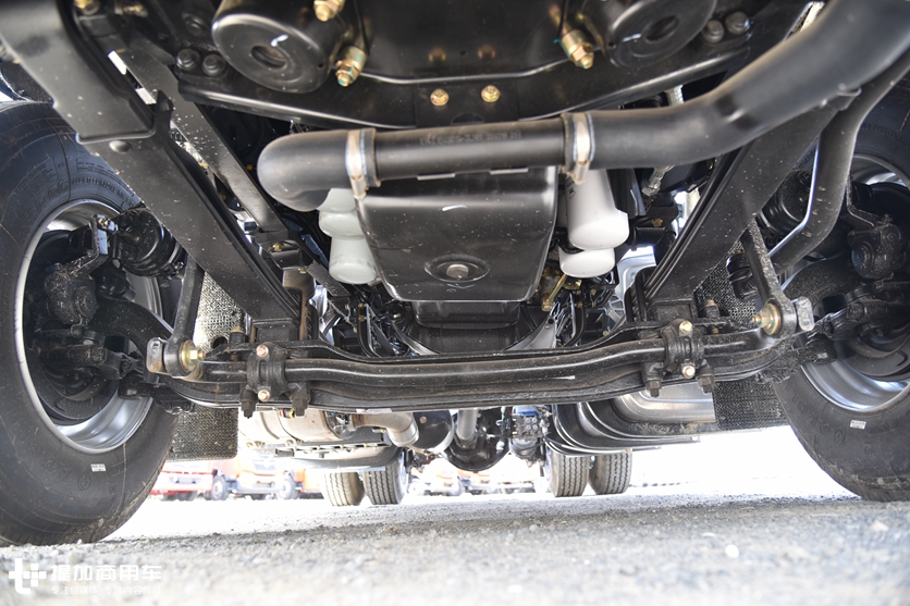 驱动桥采用的东风德纳440车桥,速比可选2.69/2.87/3.64/3.909等多个速比,可根据实际工况来定制一个合适的速比。