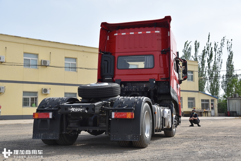 前面说到这台天龙KL专门针对快递工况,所以它是一个4x2的驱动方式,有个前提,高速收费改为按轴收费后,快递工况下,总质量46吨的4x2车型将会更适合这个领域。