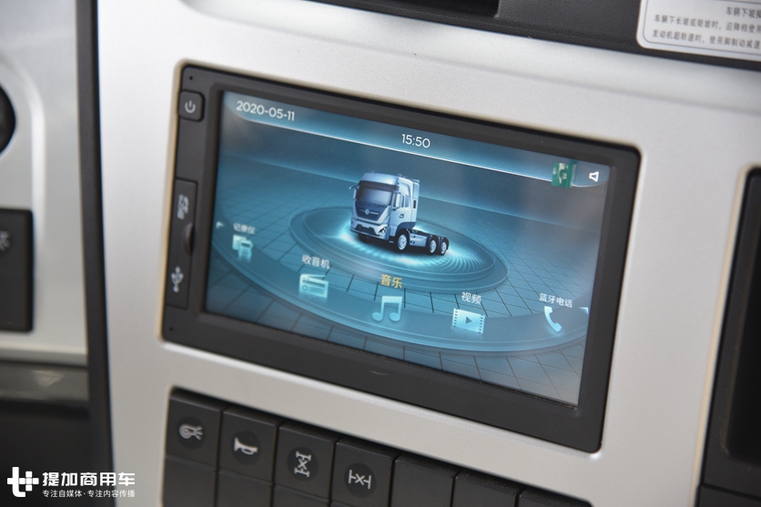 中控台还集成了一块液晶显示屏,支持图片查看、视频播放、收音机、音乐和导航功能,后期也可以接入四方位影像系统。