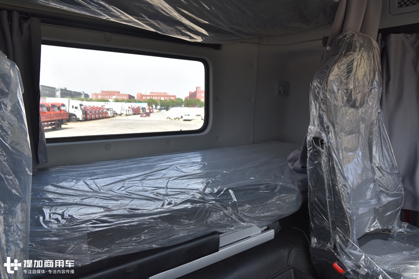 驾驶室采用的是平地板驾驶室,地板中间还是会有10cm的凸起,但并不影响空间和通过性,这也就是KL在依然保留了3级蹬车踏板的同时还能最大化保证驾乘空间的宽敞和实用性,但需要注意,蹬车踏板最后一级会有更高的落差,上下车要多留意一下。