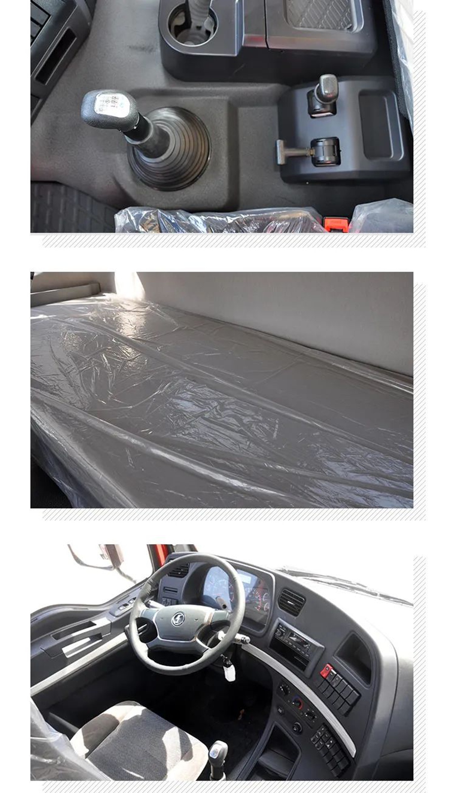 变排量压缩机,确保最大制冷量,配备阳光传感器和多点温度传感器。全自动空调,静享舒适驾驶。多功能方向盘带巡航,电动加热后视镜,标配700L铝合金油箱,可选700L+300L的1000L油箱。
