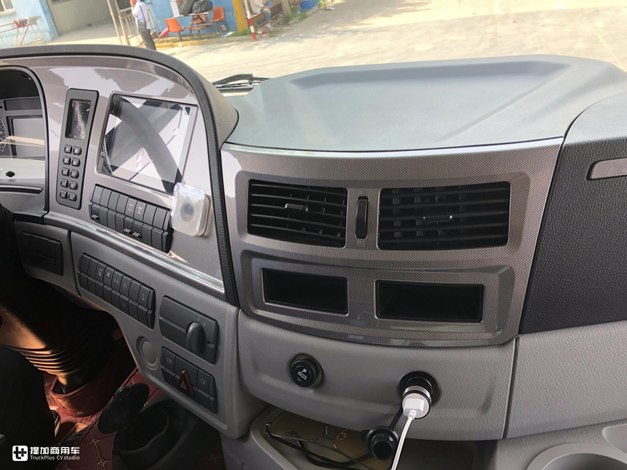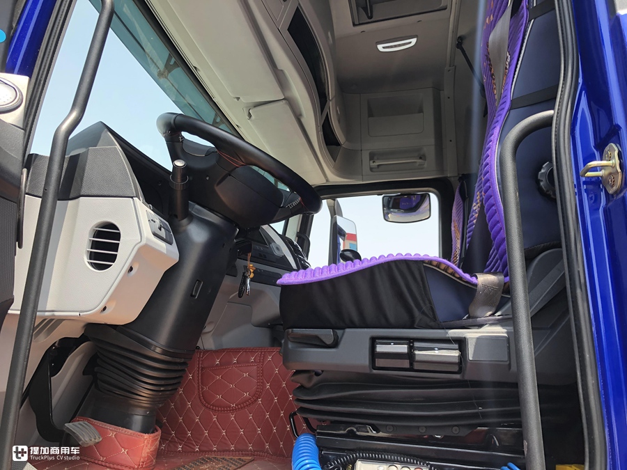 考虑到当下个体运输业主单人长途驾驶车辆的情况,主驾驶座椅带有多角度调节、自动升降等功能,可以很好的减轻了疲劳驾驶的程度。