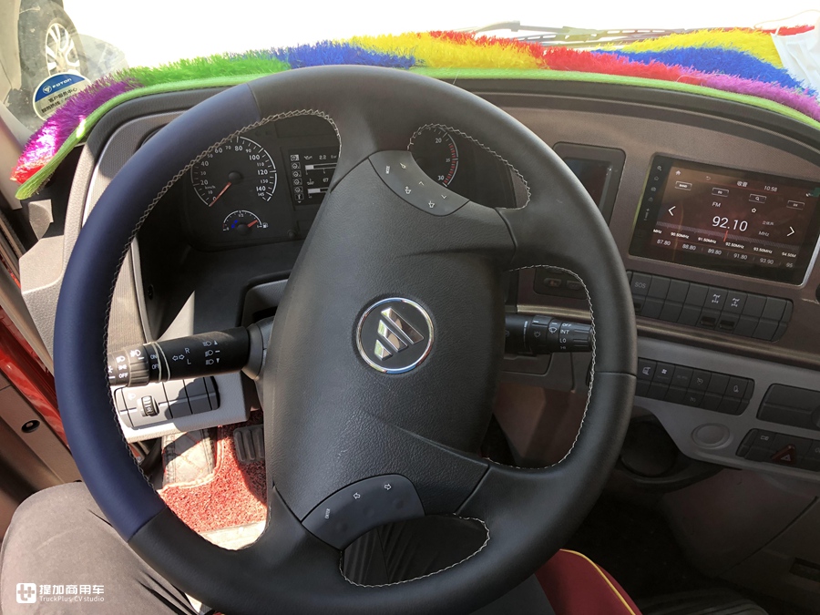 多功能方向盘带有蓝牙、语音电话,影音控制等基本实用功能,驾驶员即便长途行车过程中,通过其按键即可实现对9英寸多功能液晶显示屏的各种操作。