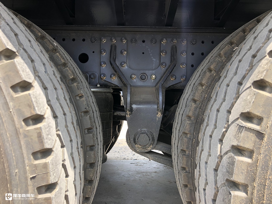 双并联车桥采用了稳定性更好的拖拽臂式(钢板+气囊)悬挂,减少行驶过程中轮胎对于路面的硬性冲击力,从一定程度上起到降低燃油消耗的作用。 更值得一提的是,政策对这种车型也有倾斜,配置气囊悬架的载货车,可以比普通钢板悬架的车型多拉一吨货。