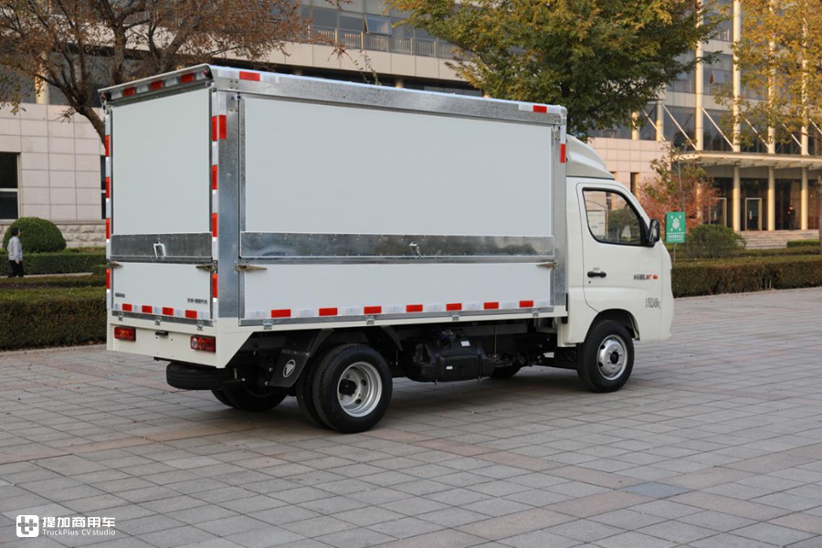 采用福田原厂的货箱,货箱地板采用印记电泳技术,防锈蚀能力强,双层打胶工艺,密封性好。车厢使用国标厢板材料,阻燃性好,抗弯曲能力强。车厢处于密封状态的时候与普通的厢式货车尺寸和规格基本相同。“祥菱创业一号”的车高也控制在2米内,无论是市区还是地下车库通行起来完全没问题。