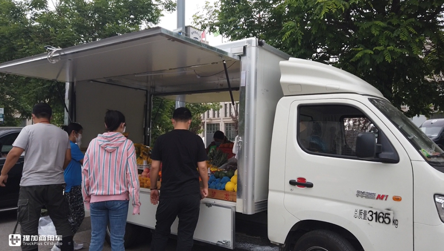但是,骑着三轮运点瓜果蔬菜到摊位去卖货已经是过去式了。为博人眼球,不少人开着奔驰宝马之类的豪车打开后备箱卖货。但要说到做生意,豪车毕竟有些不切实际,现在流行的是直接在卡车上卖货。那么一辆好卡车就成为了创业路上的好伙伴。接下来我们就来介绍一款专业的移动商铺—福田祥菱创业一号。