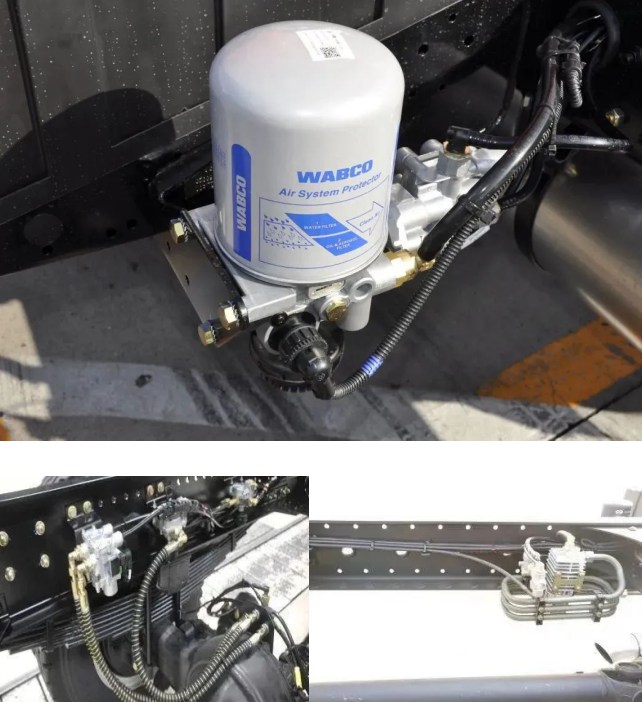 L3000载货车关键阀类件及空气干燥器均采用WABCO产品,全车气管路标配德国VOSS接头,制动气压高达10bar,同时标配油水分离器,有效去除气路中的水和油,保障气路安全可靠性,提升整车制动性能。
