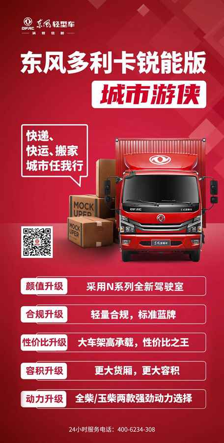 东风多利卡锐能版城市游侠 快递、快运、搬家 城市任我行 轻量合规,标准蓝牌 大车架高承载,性价比之王 更大货厢更大容积 全柴/玉柴两款强劲动力选择