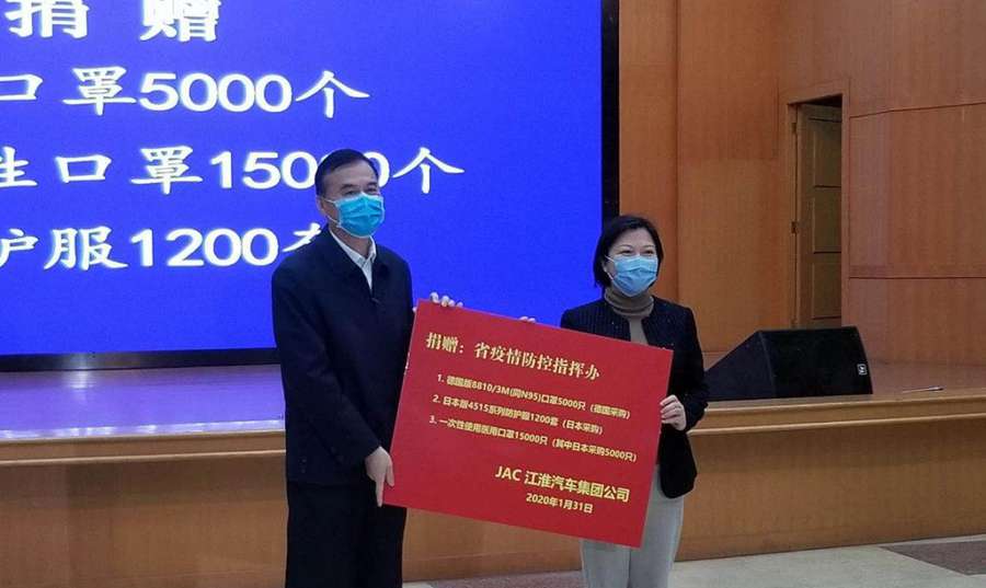 江汽集团党委书记、董事长安进向省疫情防控指挥办捐赠