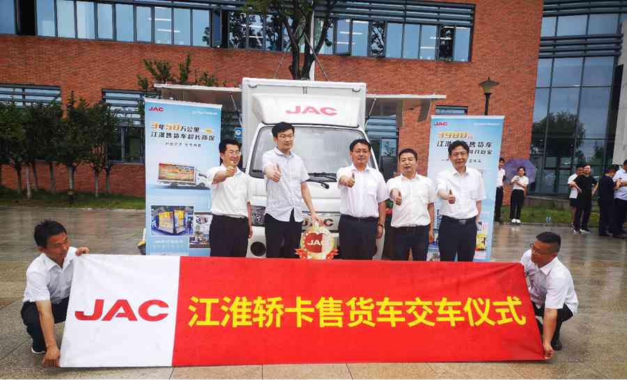 江淮轻型商用车营销公司党委书记、总经理张先华向大客户交付江淮轿卡售货车