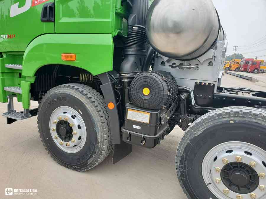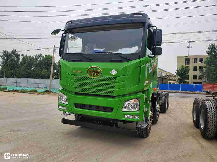 外观的话和普通版本的JH6渣土车没有太大的异样,驾驶室是现在流行的苹果绿,采用低顶全尺寸卧铺的日间规格,进气格栅延续着之前的V型多阶设计,在车标的右侧有一个LNG的标识。