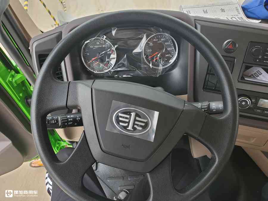 方向盘为标准的四幅式普通型方向盘,不带任何多功能按键,这个造型的方向盘在第一代JH6上有过应用。仪表盘也是解放通用的造型,清晰明了的布局广受好评。