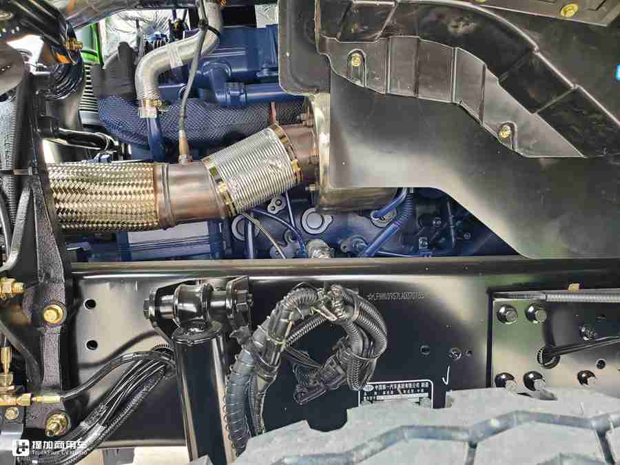 由于是采用当量燃烧的发动机技术,所以后处理没有太过于复杂,对于当量燃烧的国六重卡而言后处理是以三元催化器(TWC)为主。如果采用和国五一样的稀薄燃烧的话就需要再增加一道尿素系统(SCR),这样的成本也会偏高。
