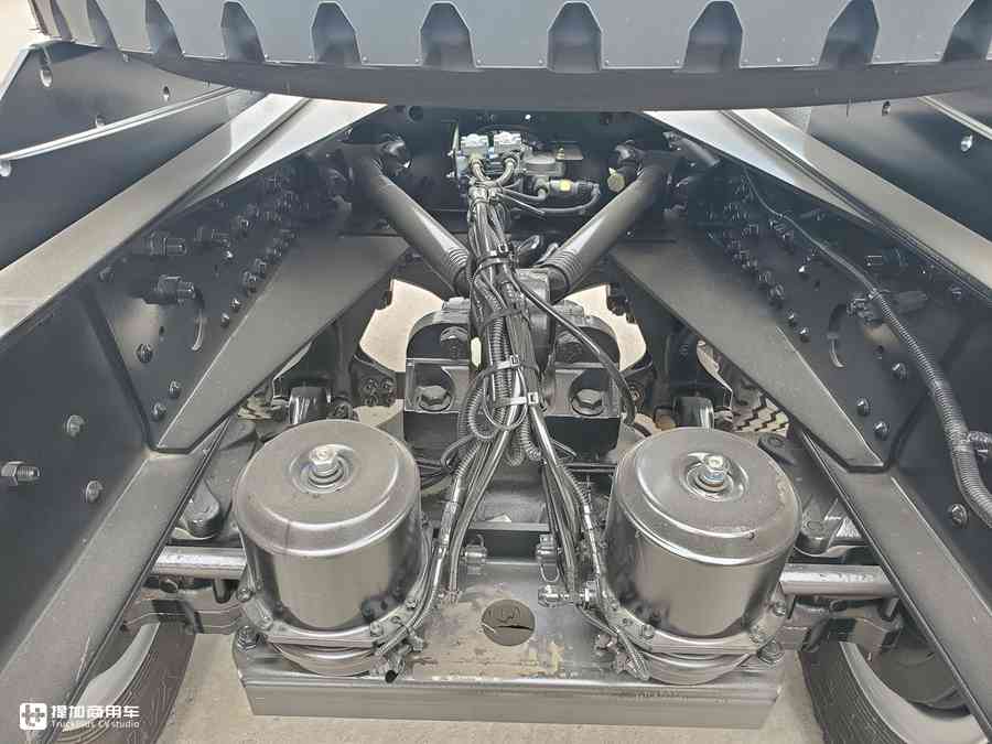 这辆车的空滤是双级滤芯的,底部为油浴式滤芯,上边的是常规的纸质滤芯,加上高位进气口可以给车辆提供相对纯净一些的空气参与发动机内的燃烧,有益于适应工地恶劣环境,延长机器寿命。