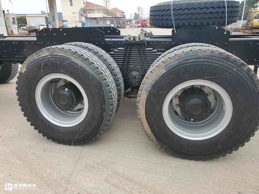 车桥是300铸钢轮减桥,速比5.263。采用多片簧+双骑马卡的悬挂,重载不是问题,但是这辆车可能真的不能重载了。