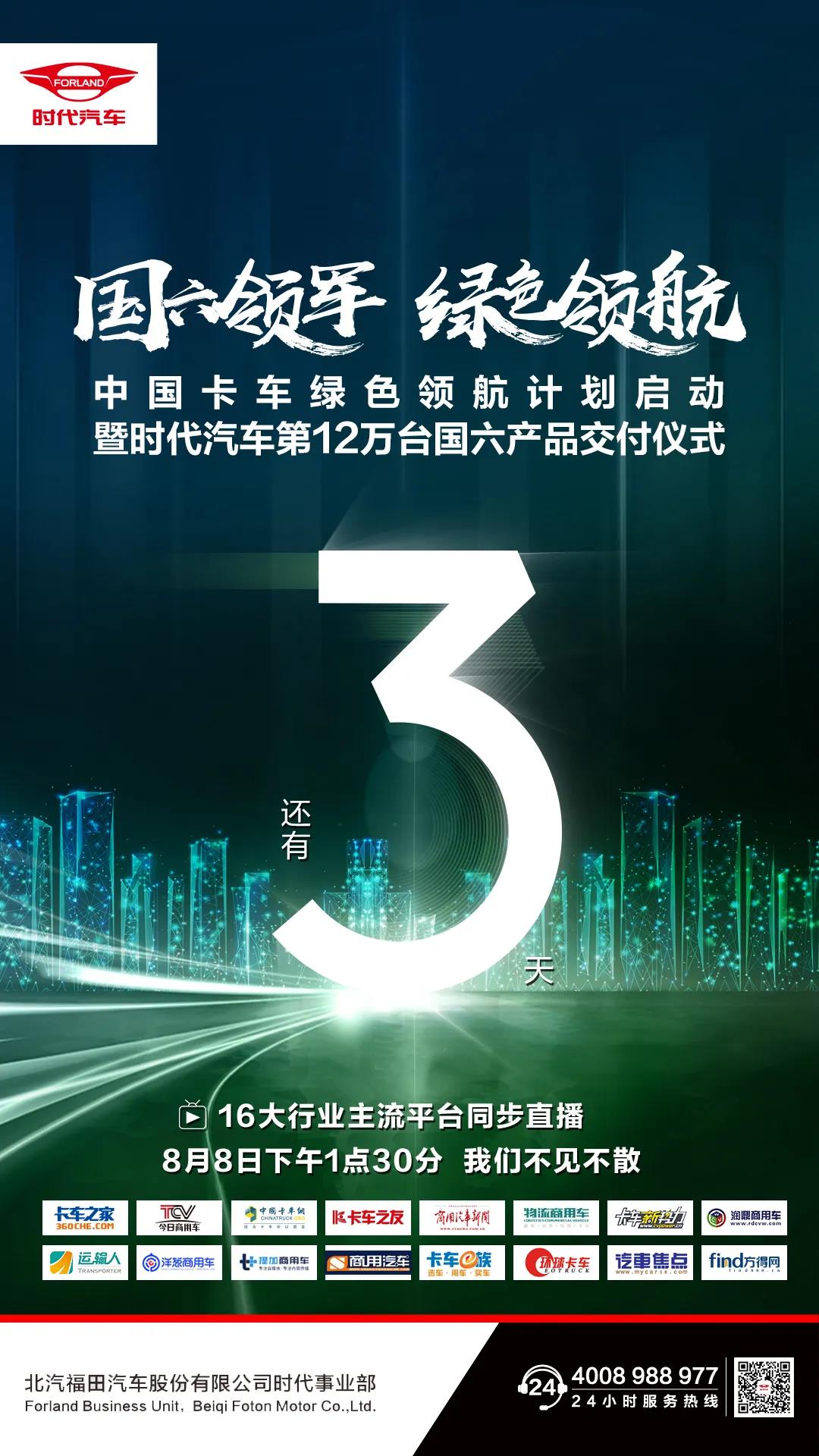 倒计时3天,时代汽车第12万台国六产品交付仪式即将开启 编辑张靖 企业快讯, 卡车2020年8月5日 16:0910.64W0 中国卡车绿色领航计划启动暨时代汽车第12万台国六产品交付仪式即将到来,国六领军 绿色领航8月8日下午1点30分16大主流平台同步直播,带你探寻时代国六产品 时代汽车(71)时代领航(40)福田汽车(337)本文来源福田时代汽车,经授权后由编辑张靖发布,观点不代表提加商用车网的立场,转载请联系原作者。编辑张靖提加商用车小编,还请大家多指教!6.22K880.79M39.56W