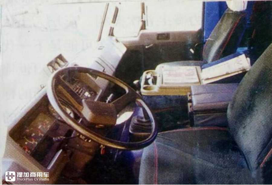 打开车门后可见这经典的内饰,这款驾驶室在后期其他品牌经过了改良依然在使用,不过有不少车型都是使用同款驾驶室的框架,而中控台却换了另一个版本,在笔者的记忆中,平时走的路过于颠簸,驾驶室也没有减震配置,所以中控台上的盖板都颠的失去了阻尼。