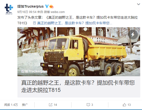 欢迎来到提加周刊,在上一周9月14日-9月20日),提加商用车网发布原创文章12篇