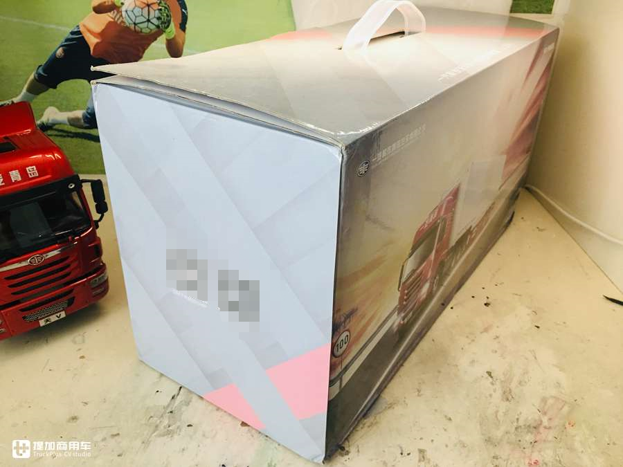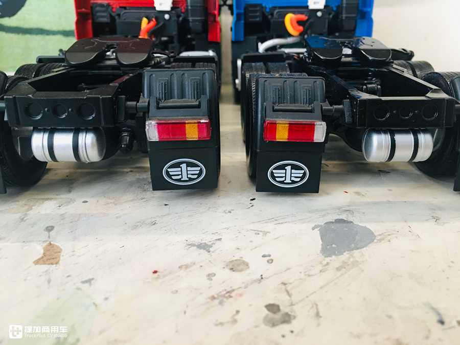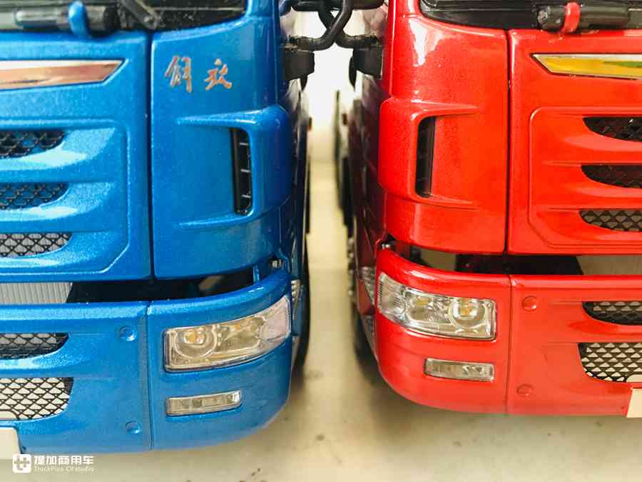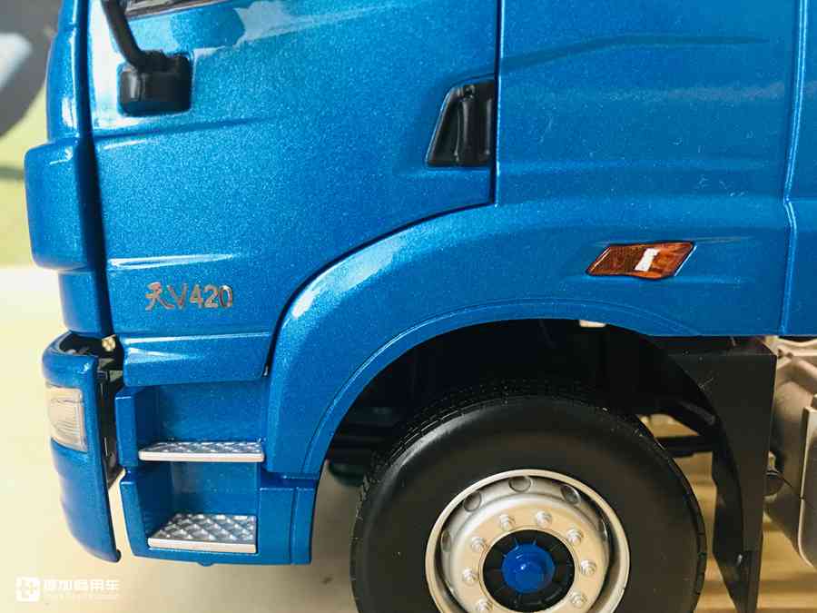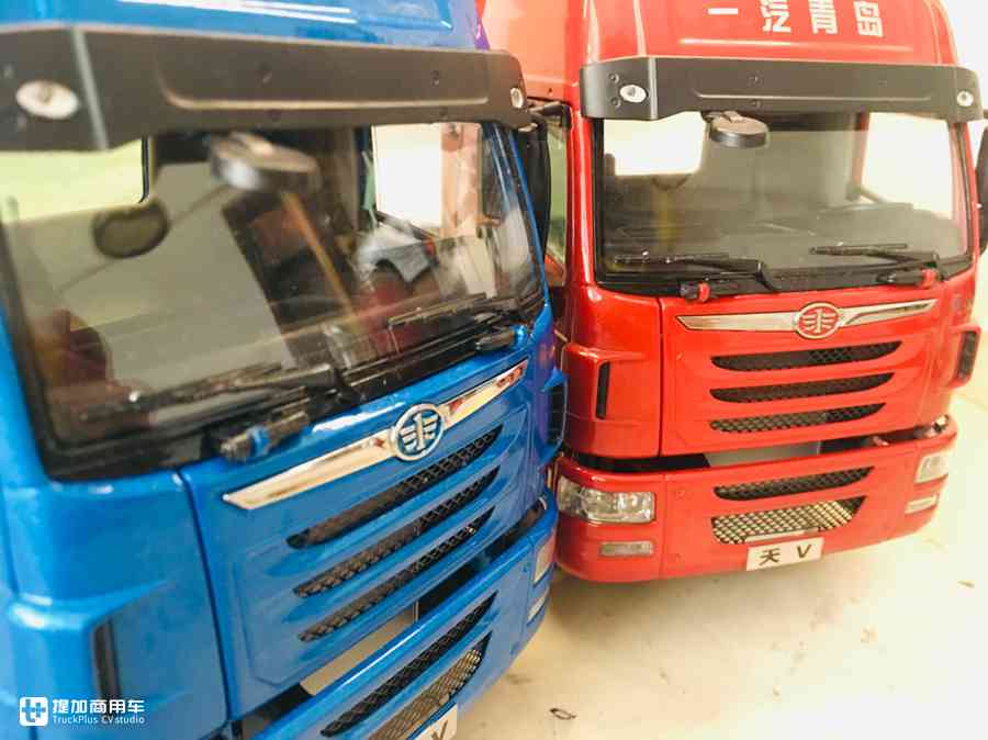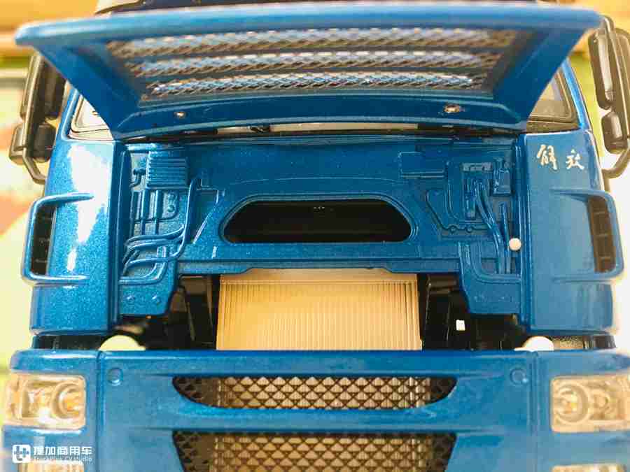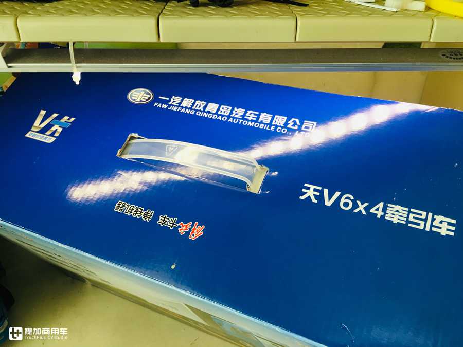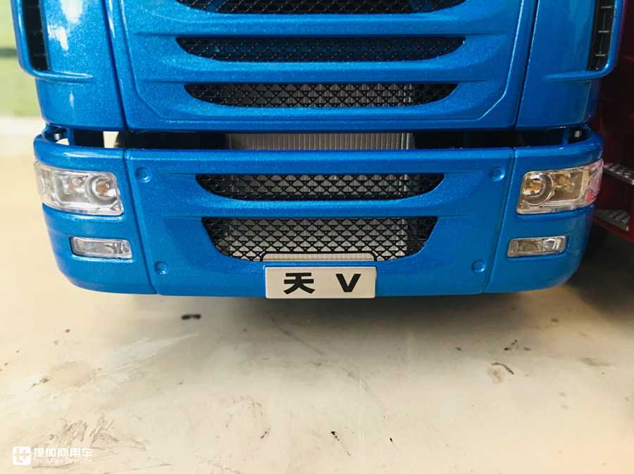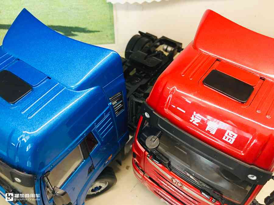 驾驶室前额的位置,天V模型移印上了“一汽青岛”的字体。不过相比与竞品而言,无论是模型还是实车的字体都偏小,宣传的效果较弱。