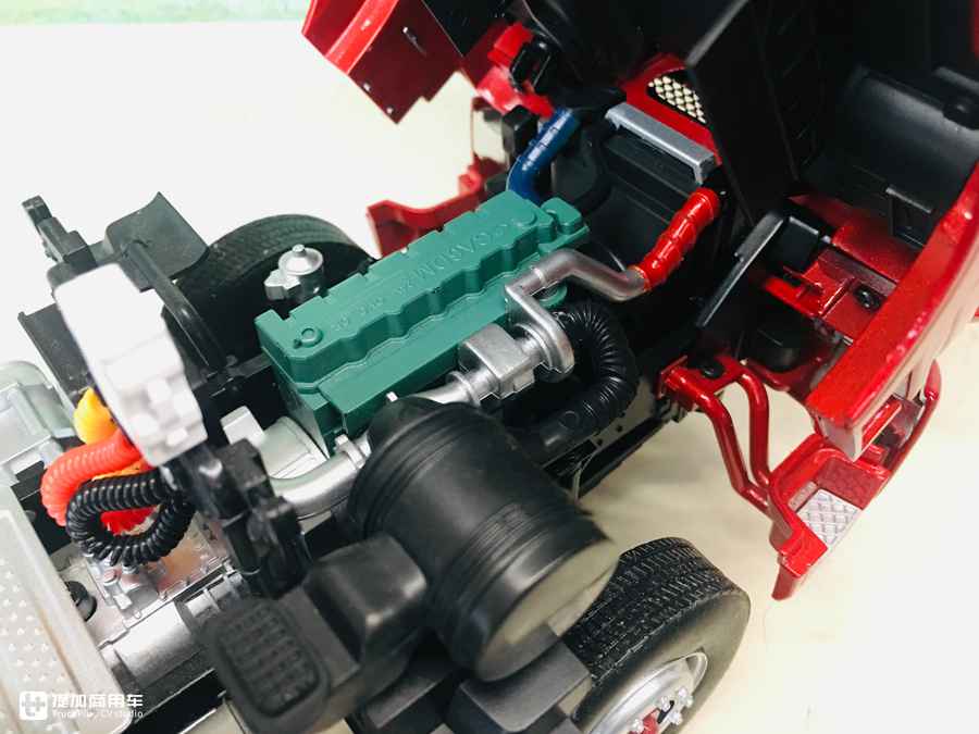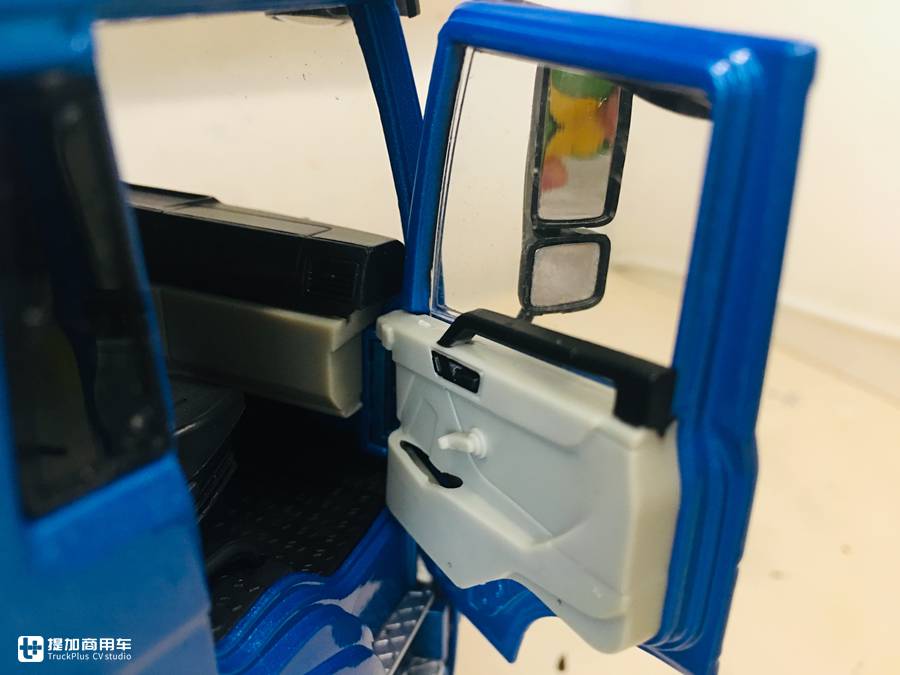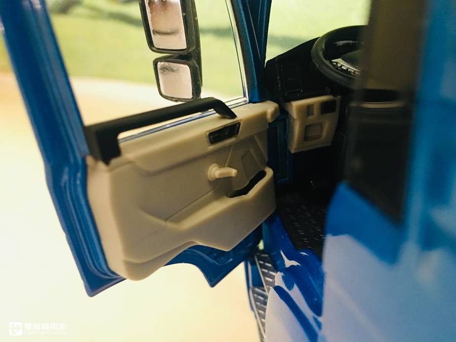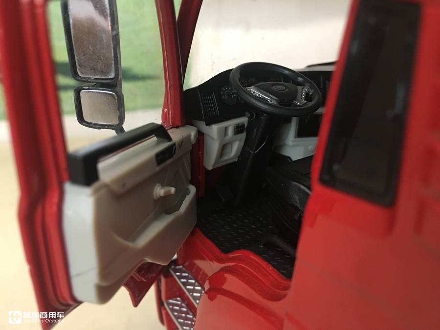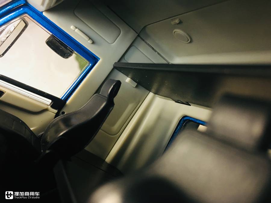 驾驶室后窗能够看得到中控台的正面方向,分色与结构的情况,都在国内卡车模型的工艺水平内排名中上。