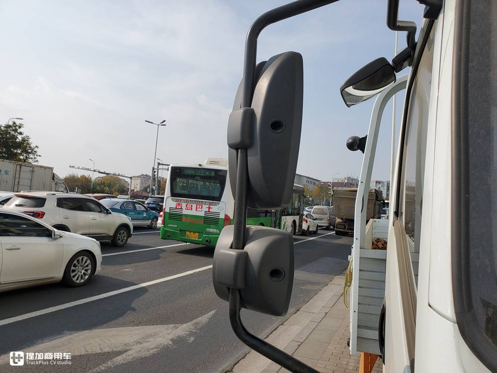 两边主副镜配齐,延长的铁制镜架可以让窄体驾驶室更加适应后方的视野,不会受上装过宽的约束,主镜带电加热功能对雨天行车也能起到一定的帮助。