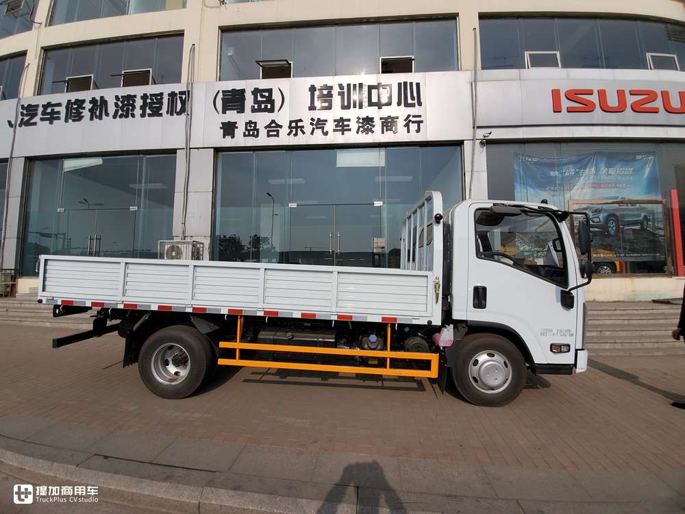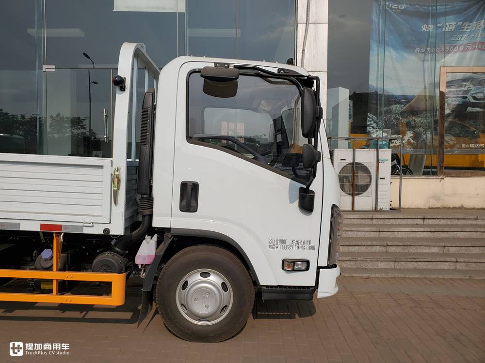 驾驶室是蓝牌4米2轻卡必配的单排规格,侧面五十铃的家族性框架非常明显。