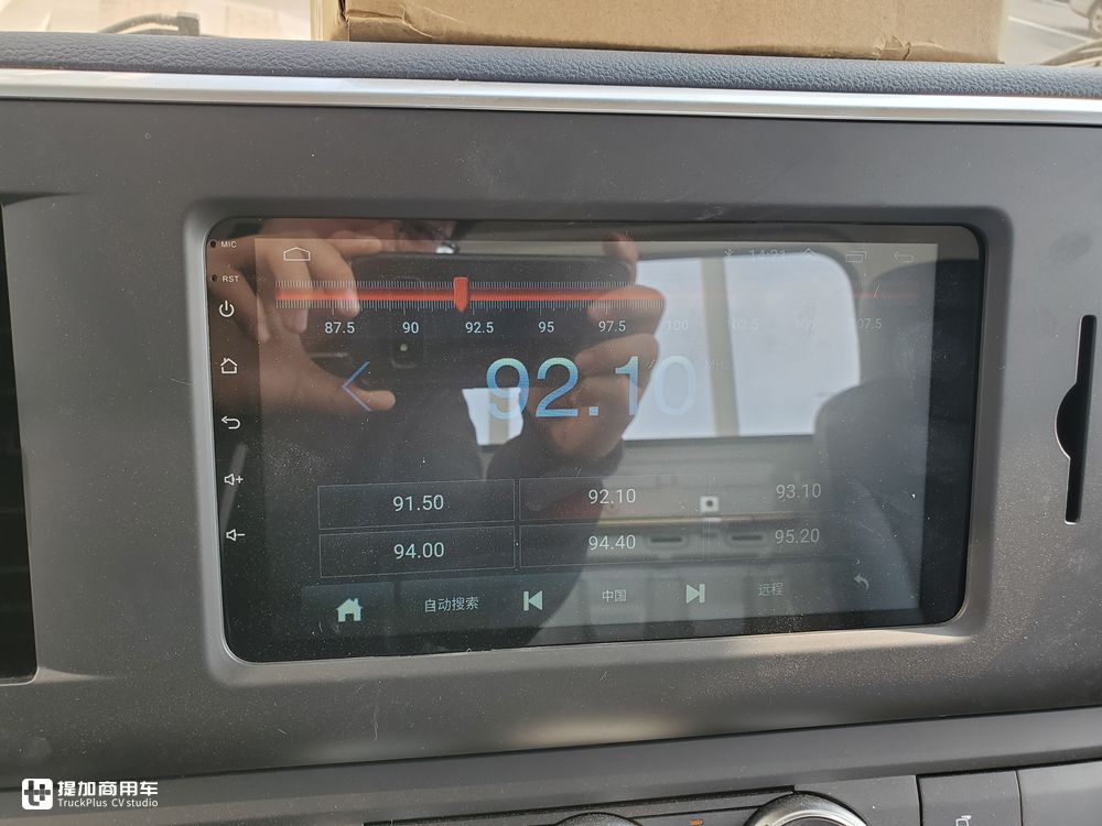 9.98万的翼放EC5轻卡标配的是收音机,这样的大屏是经销商自己改装的,相对普通的按键收音机而言更好用一些,可以连接蓝牙听歌,停车时也能通过该设备进行娱乐项目。