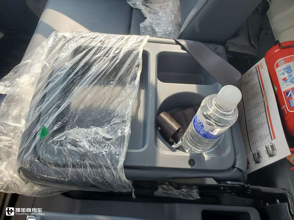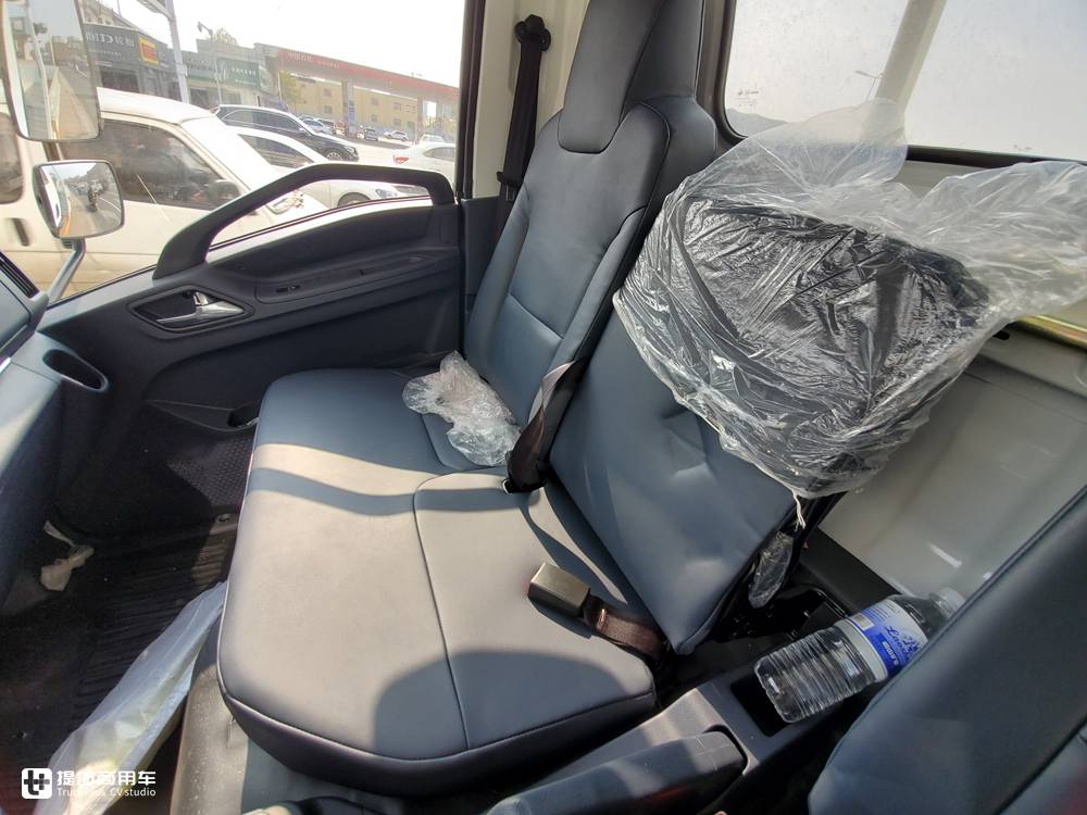 掀上去就是一个驾驶室内三座的布局,中间的座椅配有两点式安全带,采用整体式坐垫,要是坐两个人的话这个窄体驾驶室就只能挤挤了。