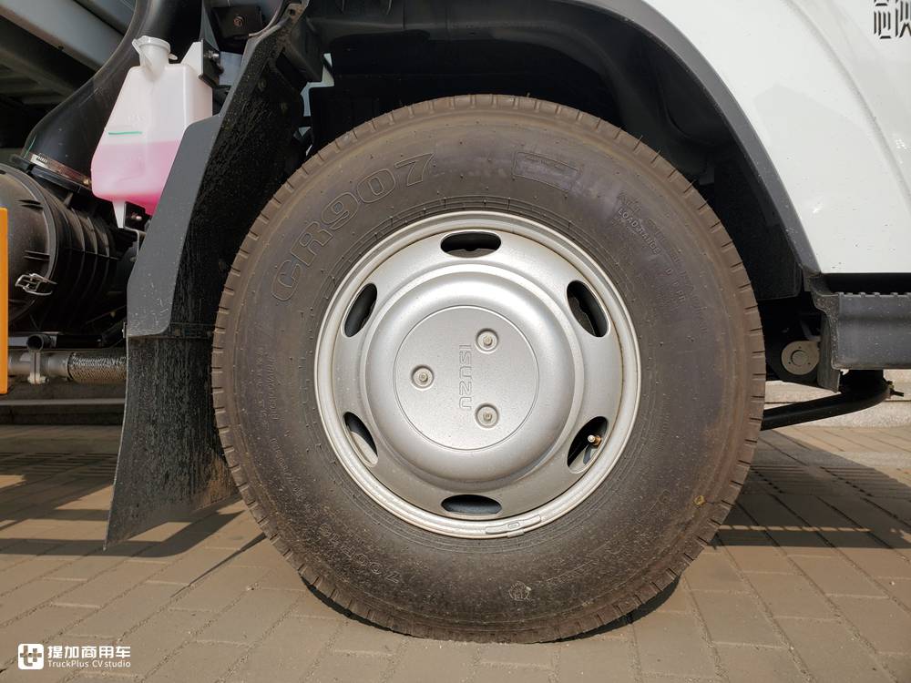 全车使用钢制轮辋,配7.00R16轮胎,前轮带有轮毂罩,在外观上看着更加美观。