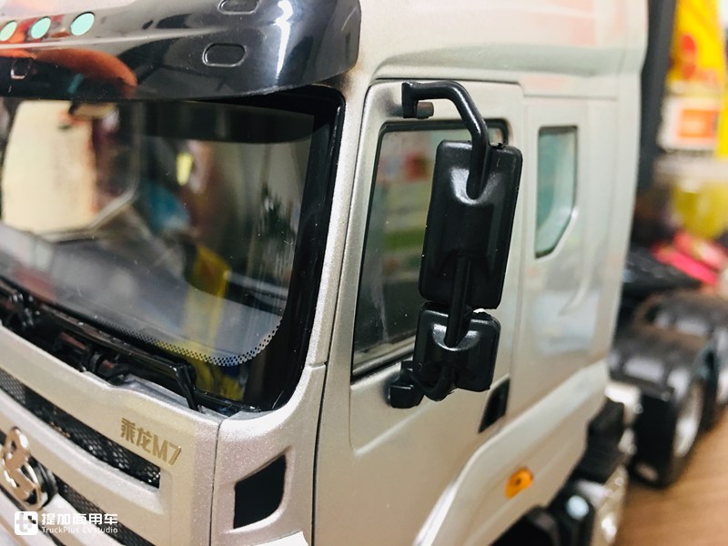 不过抬高之后,驾驶室的气势增加了不少,压迫感比507和M5更强。而实际上,乘龙M7的驾驶室总高度,甚至还要比乘龙H7略高一点点,这点无论是实车还是模型都能体现。