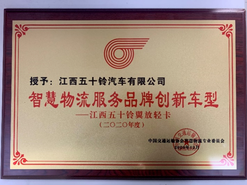 近日,由中国交通运输协会主办、中国交通运输协会智慧物流专业委员会承办的2020第三届中国智慧物流大会于广州隆重召开,江西五十铃翼放轻卡一举摘得“智慧物流服务品牌创新车型”大奖。
