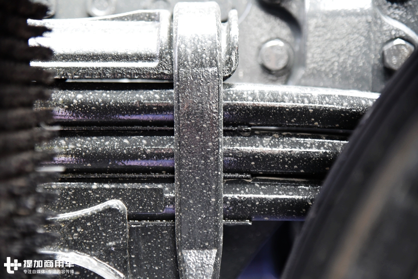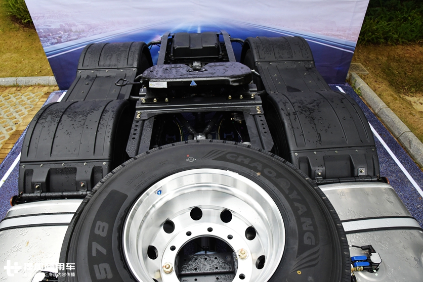 后桥采用了康迈免维护轮端,前桥同样也是康迈免维护轮端,轮端只要不漏油,不缺油,终生免维护,并且康迈还提供50万公里的质保。
