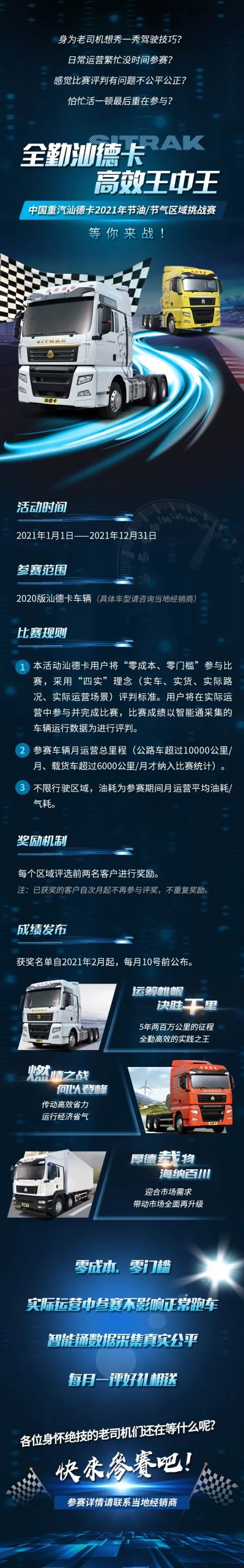 汕德卡节能比武,等你来打擂! 编辑张靖 卡车2021年1月12日 10:598.84W0 身为老司机想修一修驾驶技巧?日常运营繁忙没时间参赛?感觉比赛审判有问题不公平不公正?怕忙活一顿最后重在参与? 全勤汕德卡,高效王中王,中国重汽汕德卡2021年节油/节气区域挑战赛等你来战! 中国重汽(1435)中国重汽节气赛(1)汕德卡(262)本文来源中国重汽汕德卡,经授权后由编辑张靖发布,观点不代表提加商用车网的立场,转载请联系原作者。编辑张靖提加商用车小编,还请大家多指教!6.22K942.12M39.63W