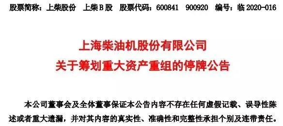 2020年12月22日,上柴股份发布关于筹划重大资产重组的停牌公告,公司拟通过发行股份及支付现金的方式购买上汽依维柯商用车投资有限公司、上汽依维柯红岩商用车有限公司及上汽菲亚特红岩动力总成有限公司的全部或部分股权,同时,募集配套资金。