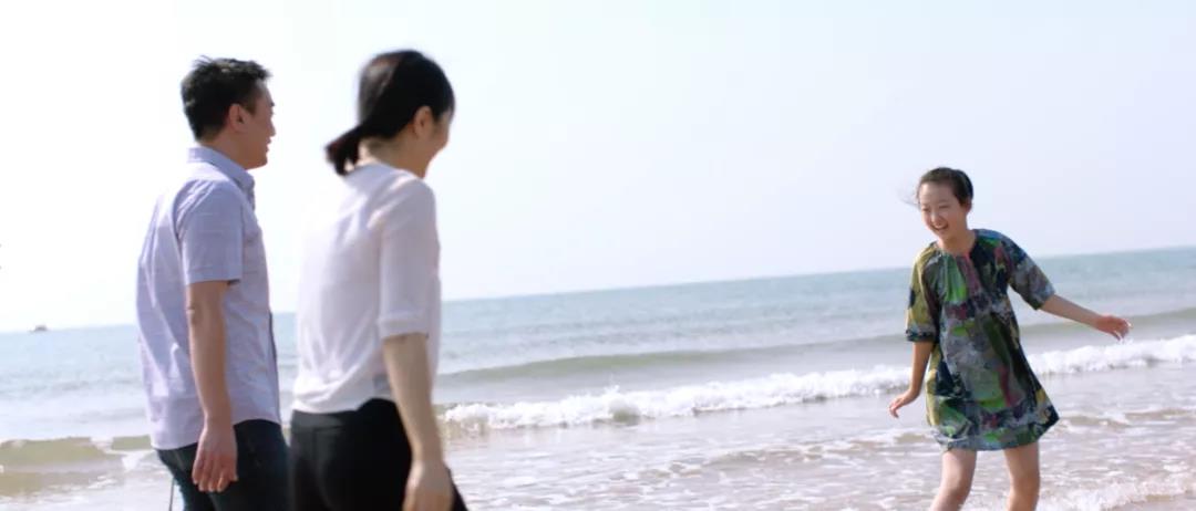 浪花簇拥着女儿的笑脸,海风推动着奔跑的脚步,他们笑着,闹着,此刻,幸福在身边。