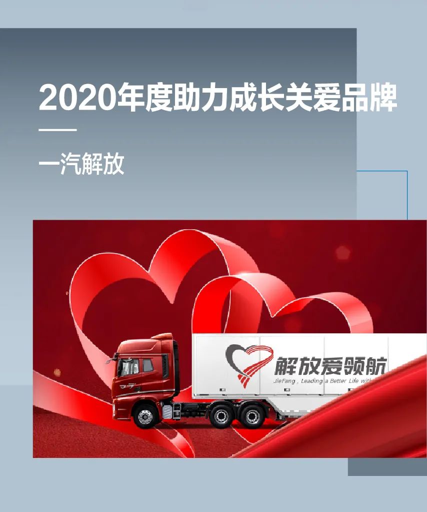 在2020这个不平凡的年份里,一汽解放发展与公益同行,不仅创下“十个第一,十项纪录”,更是在解放爱领航公益品牌的引领下,于疫情之时捐款捐物、帮助确诊卡友、将J7新车赠送给英雄司机等实际行动,彰显品牌温度。